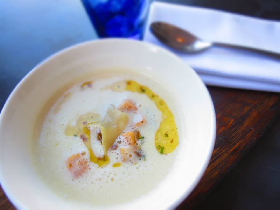 Leek and potato soup Fontina tortellini, brioche croutons and béarnaise relish