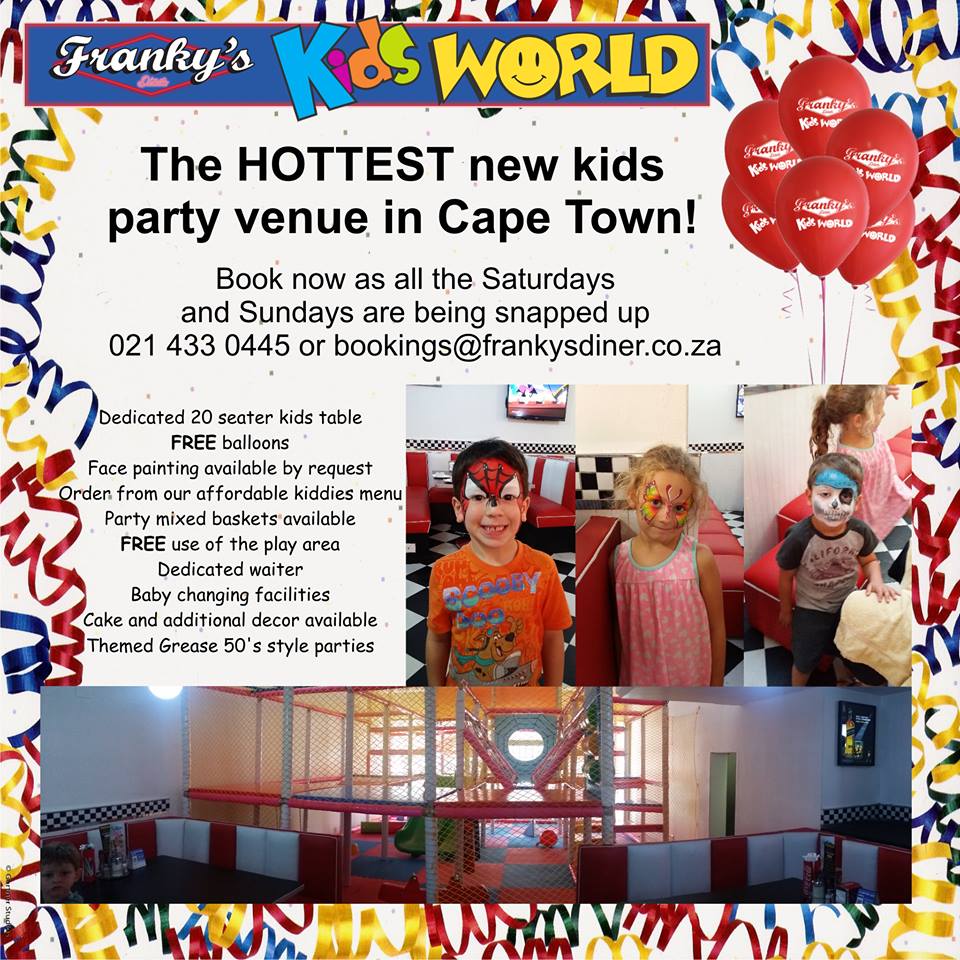 Franky’s Diner have recently opened their very own kid’s area and are now taking bookings for children’s parties in Cape Town.