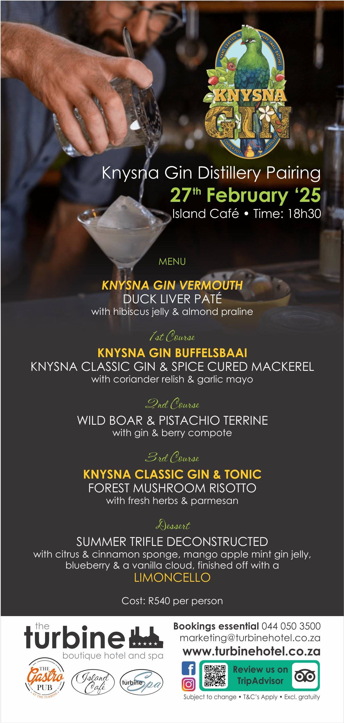 Gin enthusiasts and food lovers are in for a treat as The Turbine Hotel’s Island Café hosts an exclusive Knysna Gin Distillery Pairing on 27 February 2025.
