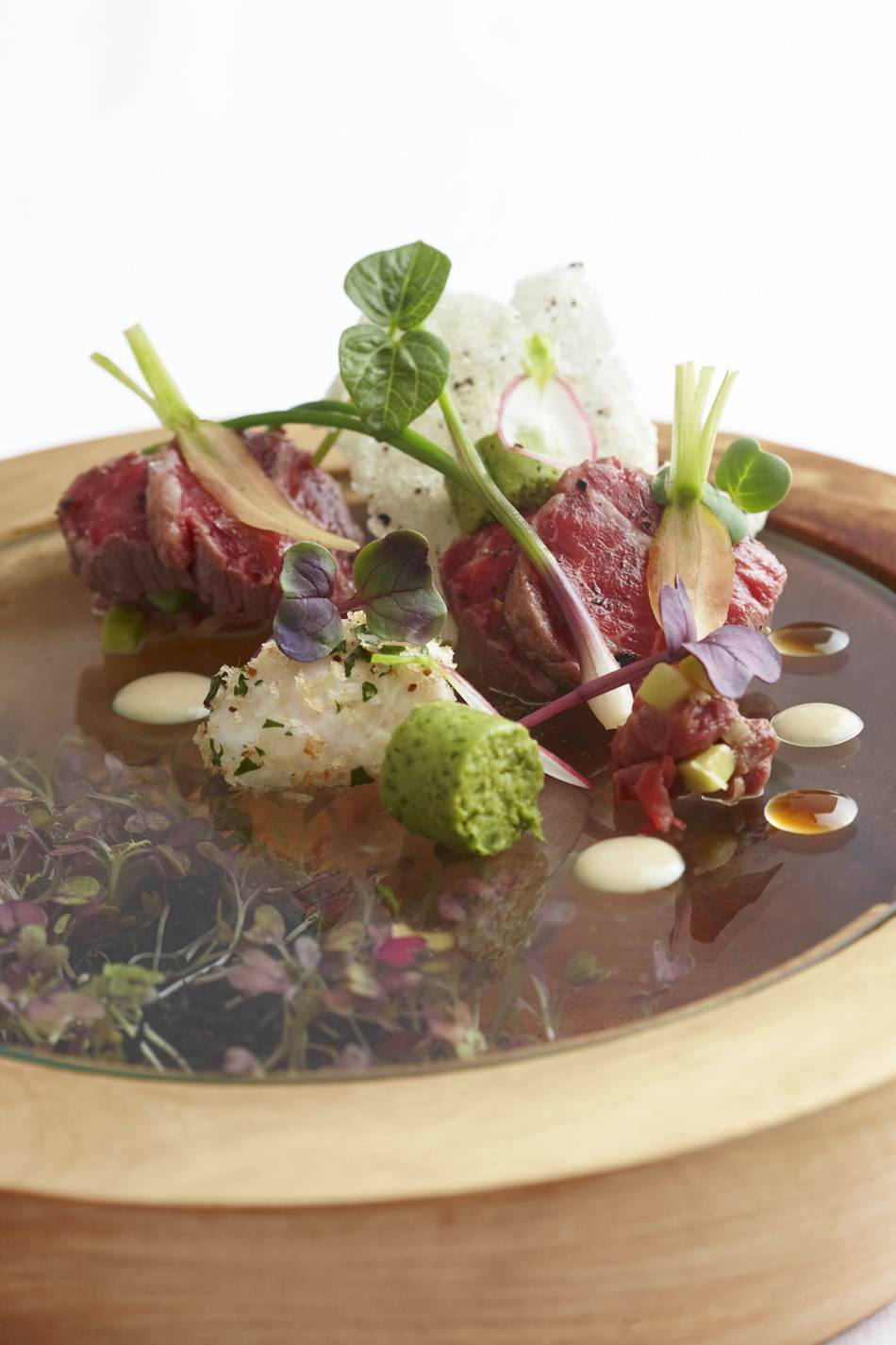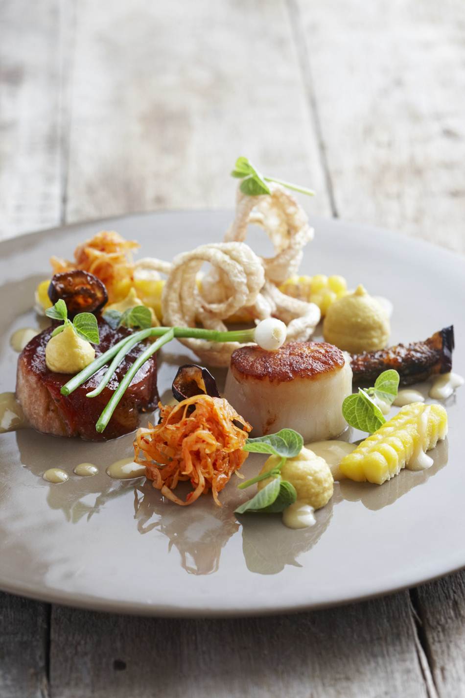 Menu favourites include ‘Tinned Tuna’ – a quirky take on the fresh tuna; ‘Scallop & Pork’ – seared scallop, Asian barbeque pork, kimchi, corn purée, lemongrass and ginger velouté, aubergine, crackling and ‘Grass-fed Dry Aged Beef’ – grass-fed aged beef, smoked pomme purée, carrot and turnip purée, turnip marmalade and black pepper café au lait