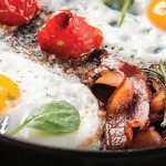 Panacotta, smoked granita, croquette, ketchup and charred onions