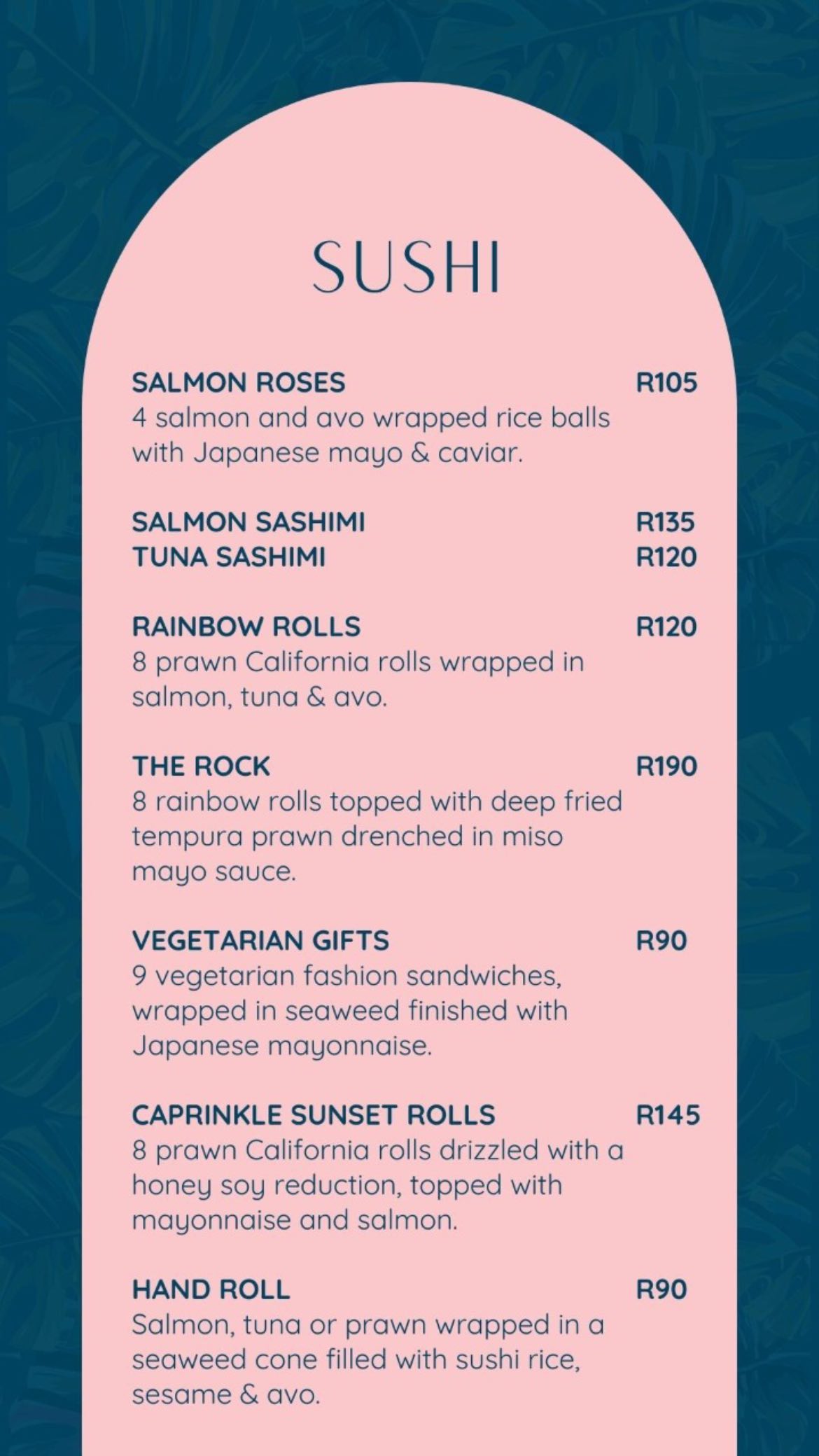- The Salmon Roses are a unique and delicious twist on traditional sushi, combining succulent salmon with creamy avocado and rich Japanese mayo, all wrapped in a perfectly formed rice ball. The Rainbow Rolls are a colorful and flavorful blend of prawns and salmon, tuna, and avocado.