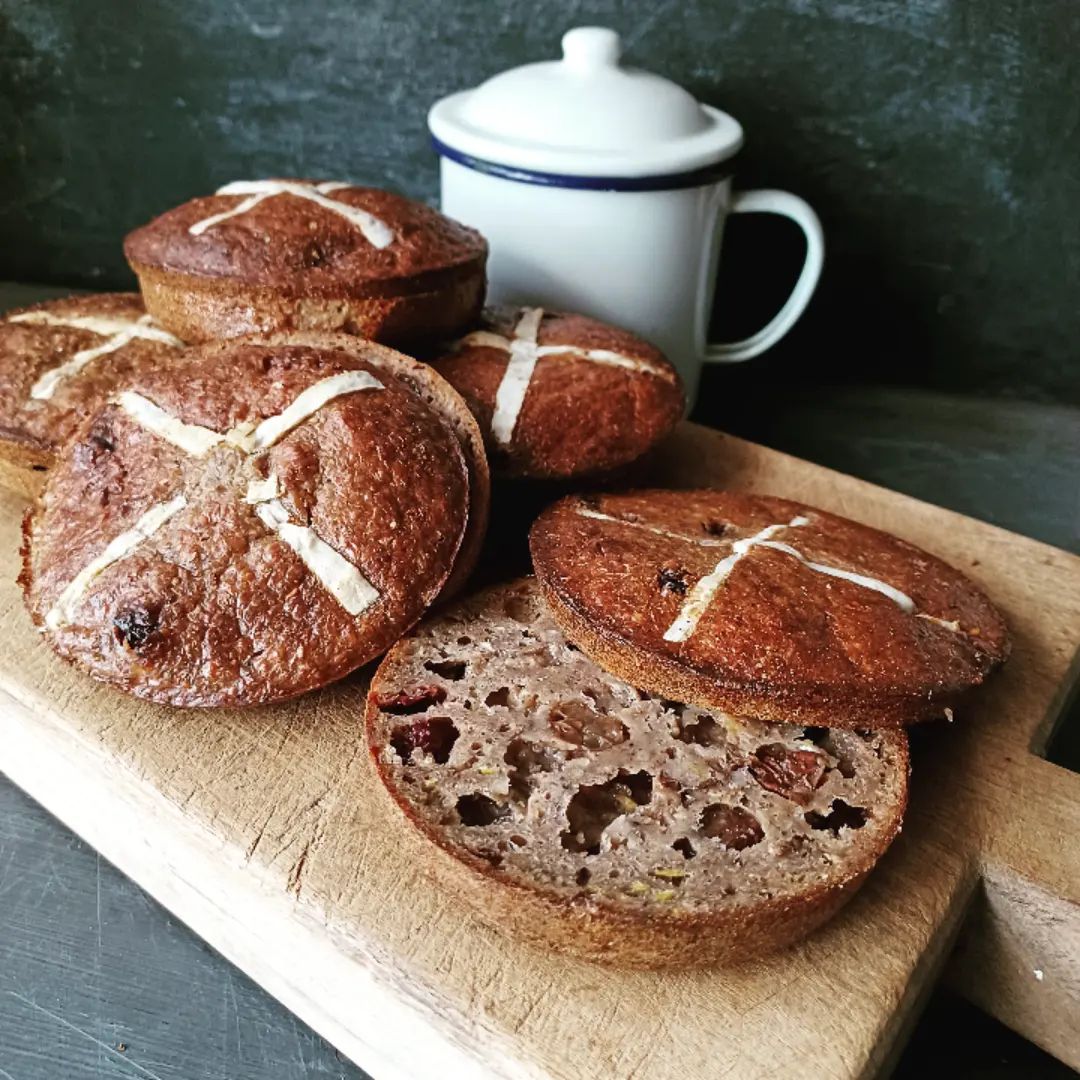 Hannam & Co. bake a totally new type of hot cross bun, made entirely from soaked and fermented seeds. It contains no gluten, no added yeast, dairy or sugars, and no binding or raising agents. It is GMO-free, low GI, and suitable for diabetics, coeliacs and vegans! What’s more, it is by far the most delicious gluten-free bread on the market.