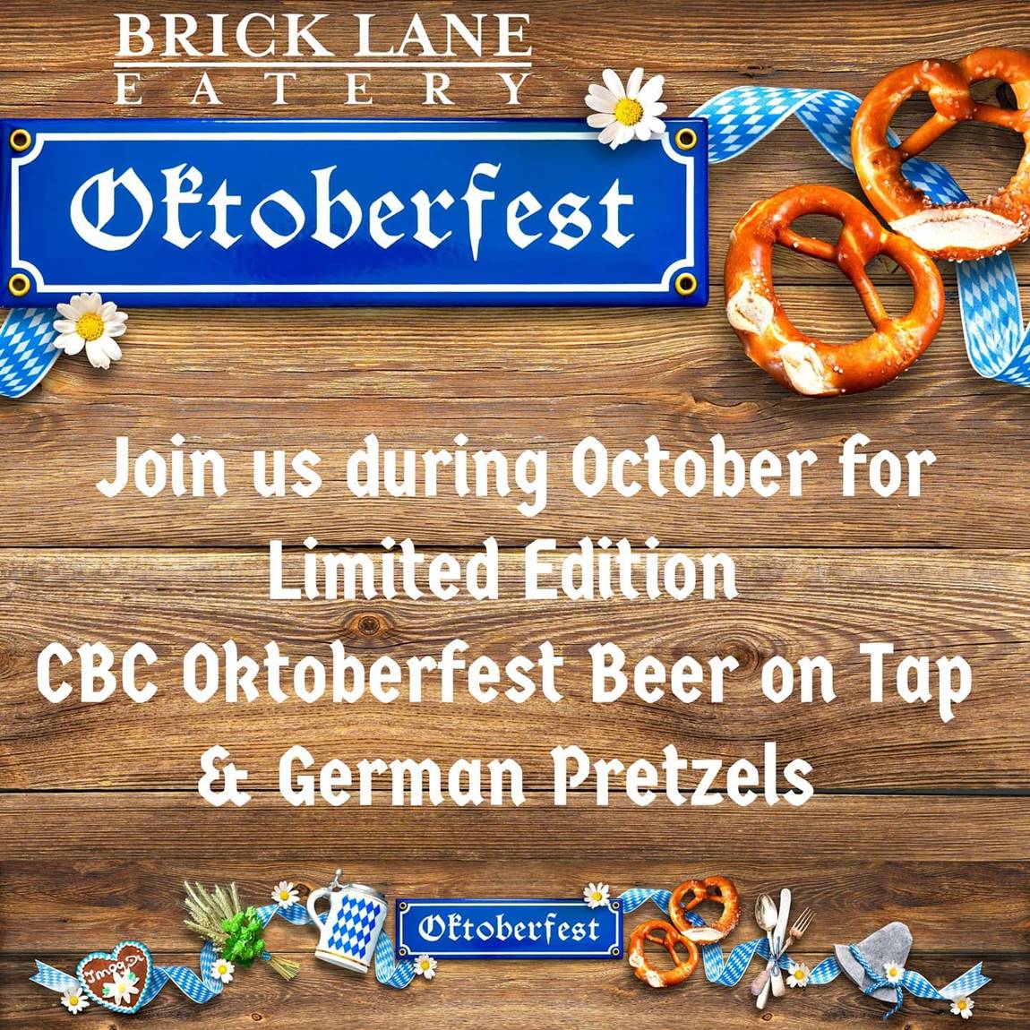 Brick Lane Eatery is celebrating Okoberfest with a limited edition CBC Oktoberfest beer and German pretzels. Come and try it during their happy hour every Friday from 4pm. You can enjoy beer, house wine and G&T for only R30.
