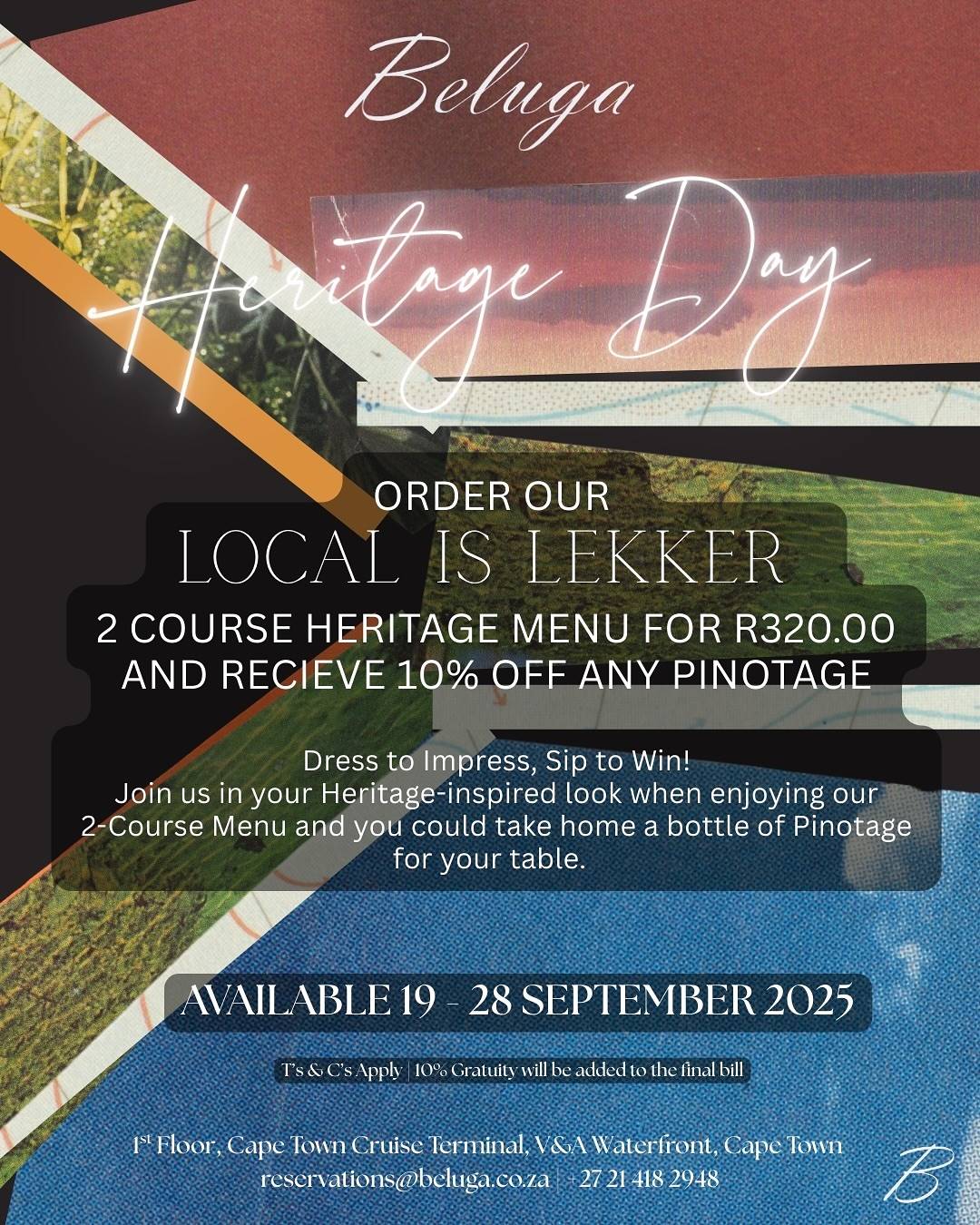 Now here’s where things get extra fun: Beluga’s giving away a bottle of Pinotage daily to the best dressed guest. So, come dressed in your most inspired Heritage Day outfit and you just might walk away with more than a full stomach. Think bold prints, cultural pride, vintage throwbacks – whatever shines your heritage light the brightest.