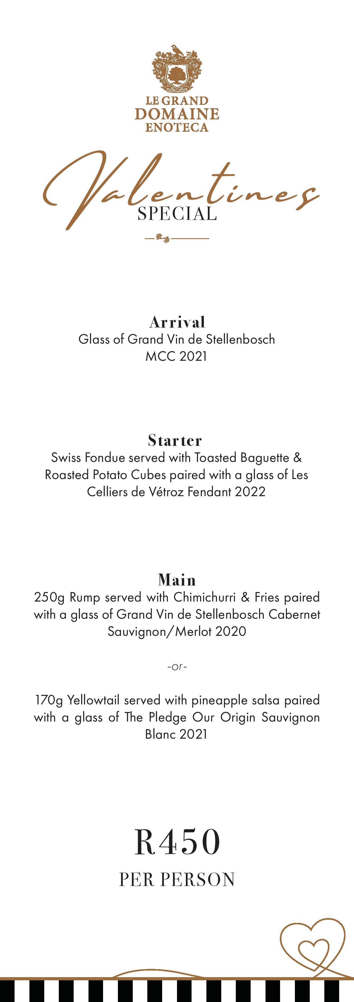 Celebrate love with an intimate 2-course Valentine’s dinner at Le Grand Domaine Enoteca.