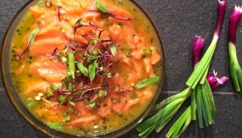 Boil the quinoa according to the packet instructions (tip: when it starts to split and look like tiny worms, it is ready) and let cool. Quickly, and cautiously, toast the pine nuts in a hot oven or in a dry pan. In a separate bowl, add the zest and juice of one lemon. Mix in the pomegranate rubies. Finely chop some chives and parsley and add into the mixing bowl. Lastly add in the (cooled) pine nuts and mix in the quinoa. Tear apart the larger mint leaves, keeping the smaller ones in tact, and combine them with the salad last – it’s important that all the ingredients are cool when you add the mint, else it they will turn black. Add a glug of the oil of your choice, salt to flavour and serve.