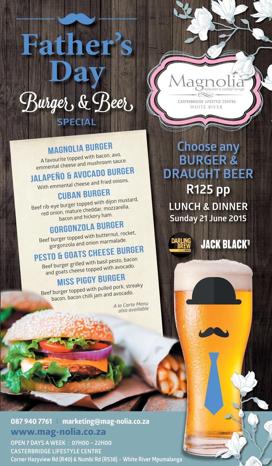 This is something to look forward to at Magnolia – burger and beer! We think that your dad will love you forever!