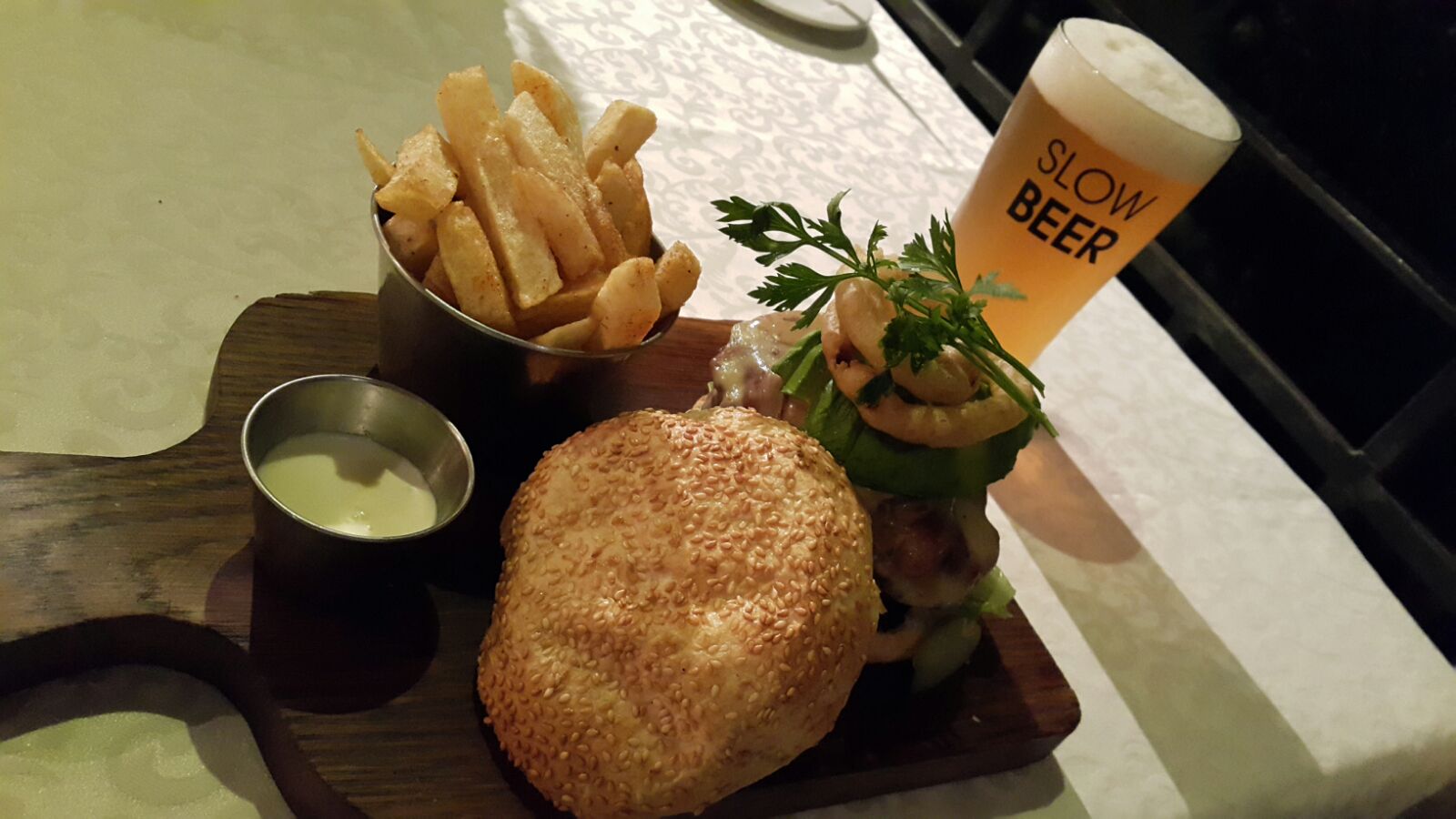 It is the most delectable and juicy burgers! You can taste every element of the burger and chips are as fresh and crispy and you want them. We had the Gorgonzola burger, which was to die for! It comes with a cream Gorgonzola sauce with some butternut and onion marmalade. It is really worth a try and it goes so well with the Darling brew slow beer.