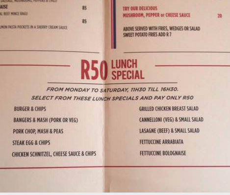 One of Cape Town’s best lunch specials, Da Vinci’s on Kloof are still offering a selection of their most popular dishes for only R50 during lunch hours (11h30 – 16h00).