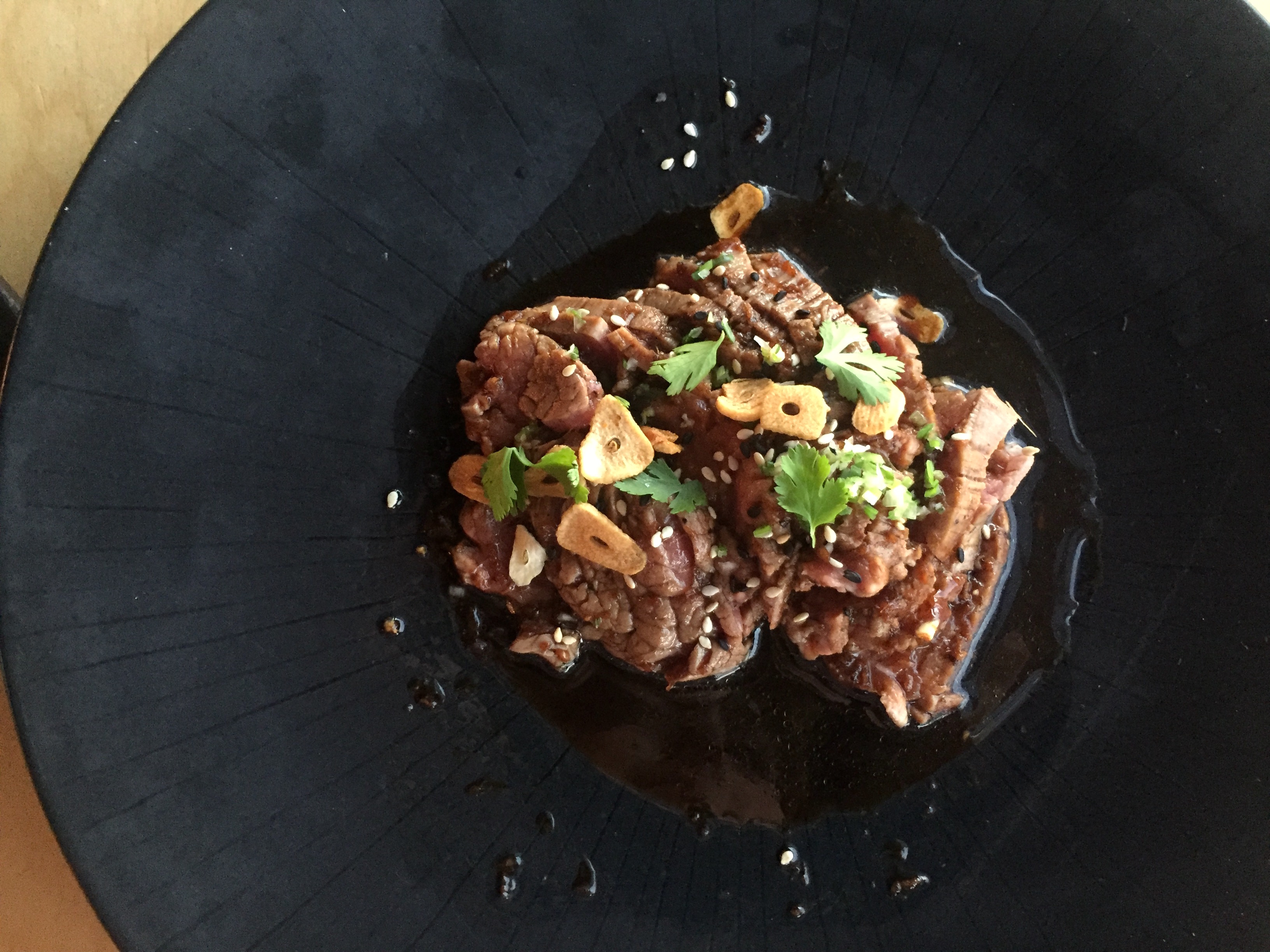 Served cool, the perfectly seared beef was slightly charred, but deliciously rare and tender, with those delish garlic chips, nutty sesame (people don’t realise how a tiny sprinkle can add to a dish!) fiery ginger, and a sharp soya and black vinegar dressing. While it’s not a huge portion, the flavour it packs is a knockout.