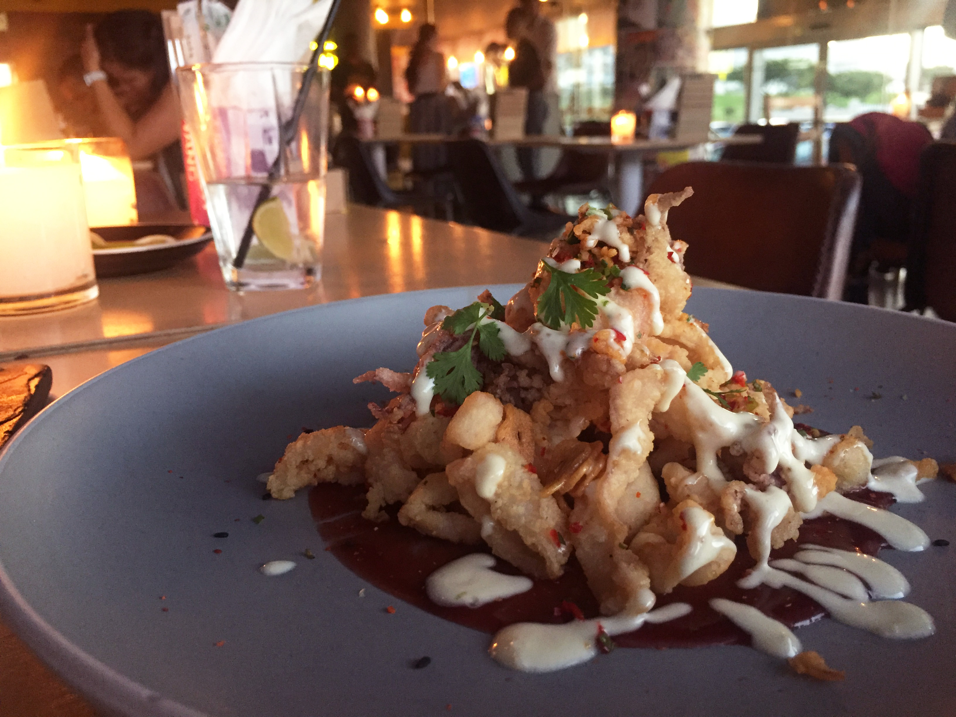 A really nice sized portion of calamari in a light batter with a great kick of chilli. I loved the deep-fried garlic chips and coriander and the fruitiness of the hoisin sauce and yogurt dressing brought it all together. This one will definitely be a crowd pleaser.