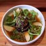 The menu is deceptively simple & full of wonderful delicate surprises and utterly delicious. The main components are 5 broths: Clear, Yellow, Brown, White and Green. Opt for a cup of broth or a bowl. A bowl is a combo of carefully combined ingredients, over which you pour the broth. Broth and dishes can be enjoyed Hot or Cold. New on the menu: summer salads with broth reduction. Drinks: broth smoothies, shrubs, kombucha fire tonic, sparkling water.