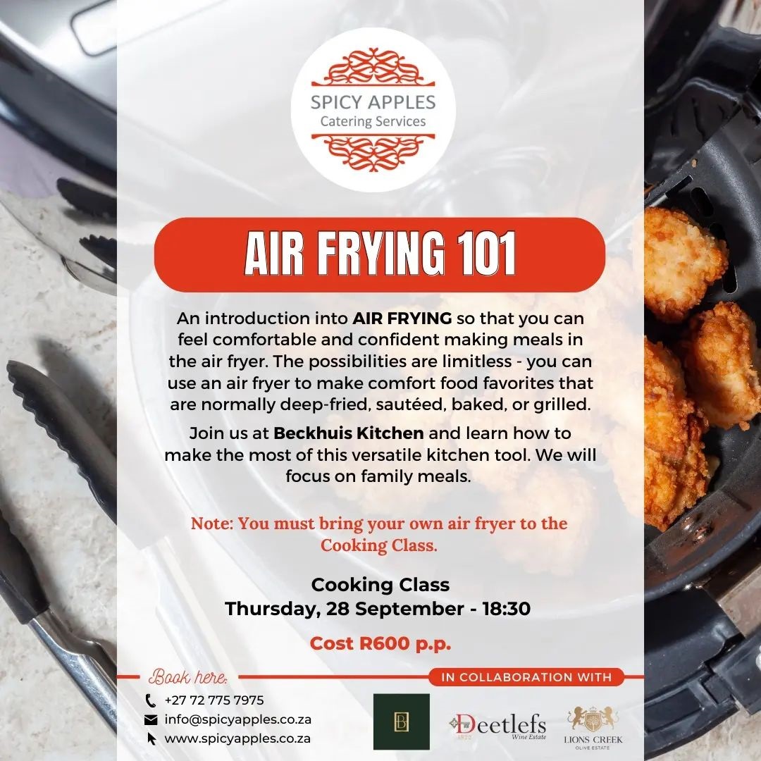 If you’re seeking an interactive and relaxed approach to culinary education, SPICY APPLES’ Interactive Class is your gateway. Unlike traditional cooking schools, their focus is on nurturing your experimental spirit, making cooking an exciting adventure. Nestled in the serene embrace of Beckhuis, you’ll engage in a hands-on experience that blends learning with leisure. With a glass of wine in hand and the company of friends, you’ll master the art of crafting a 3-course meal that wows. Click here to book your spot at the Air Frying 101 Interactive Cooking!
