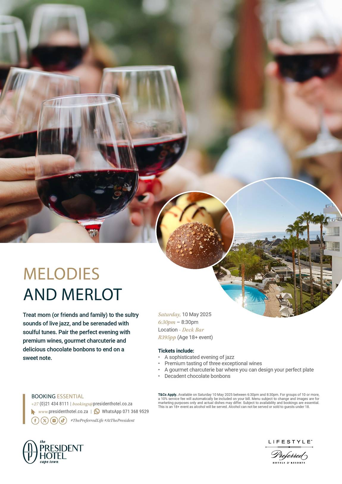 Whether you’re celebrating Mother’s Day early or just keen for a classy night out with friends, this is your excuse to sip, savour, and sway to the music. The setting? Pure Cape Town luxury—sunset skies, palm trees, and The President Hotel’s unbeatable Atlantic backdrop.