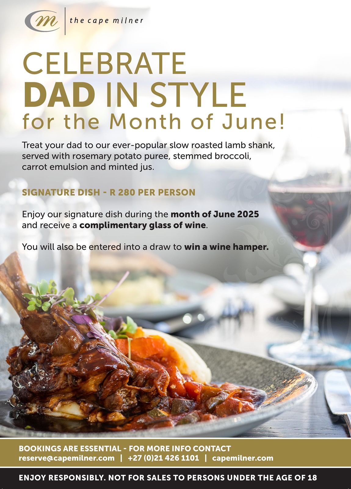 Dads, sharpen your appetite. Cape Milner’s got your seat—and your lamb shank—ready.