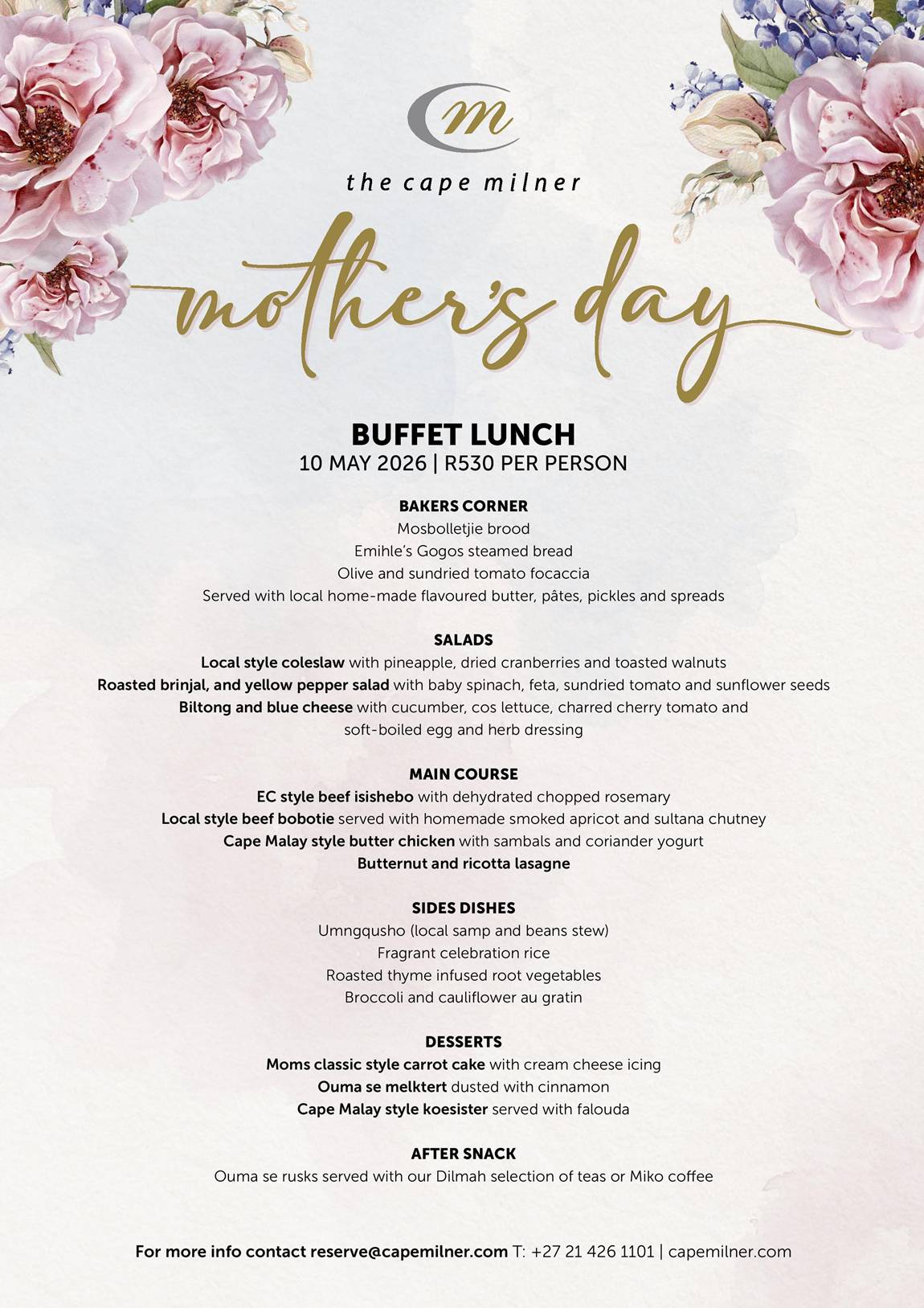 At The Cape Milner, Mother’s Day is all about variety, comfort, and a table worth lingering at.