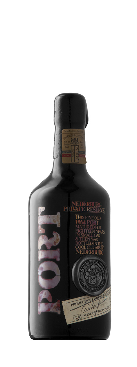 The oldest Nederburg wine to feature on the 2018 Nederburg Auction is a 1964 Port made by Günter Brözel, Nederburg cellar-master for 33 years (from 1956 to 1989). His only Port, made exclusively from Shiraz grapes, still exhibits rich, ripe and silky fruit and notes of spice, vanilla, raisin and caramel. Each bottle is individually numbered and sealed with a coat of wax.