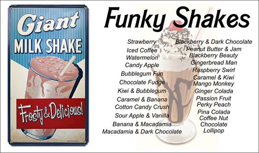 Raspberry Swirl / Mango Monkey / Passion Fruit / Watermelon / Perky Peach / Iced Coffee. So what’s your favourite Franky’s Diner milkshake?