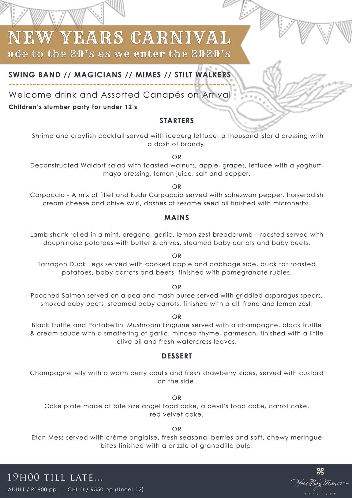 In staying true to their nature, Hout Bay Manor is hosting a New Year’s Party on 31 Decemeber at 7pm and it’s going to be a roaring good time as guests welcome the new year in 20’s style!