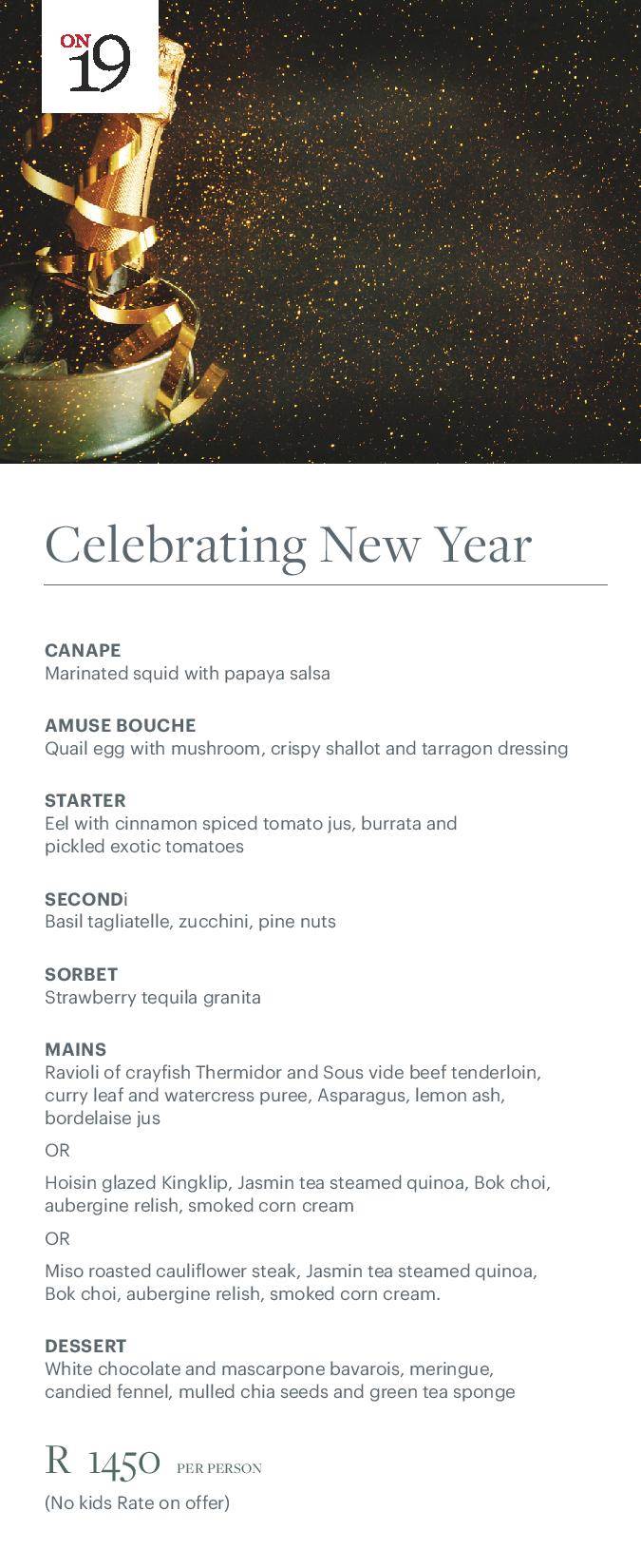 For New Year’s Eve, the restaurant will boast one of the most beautiful views of Cape Town being on the 19th floor of the Westin Hotel (near CTICC). A 7 course tasting menu will be offered to all guests on New Year’s Eve for R1,450 per person.
