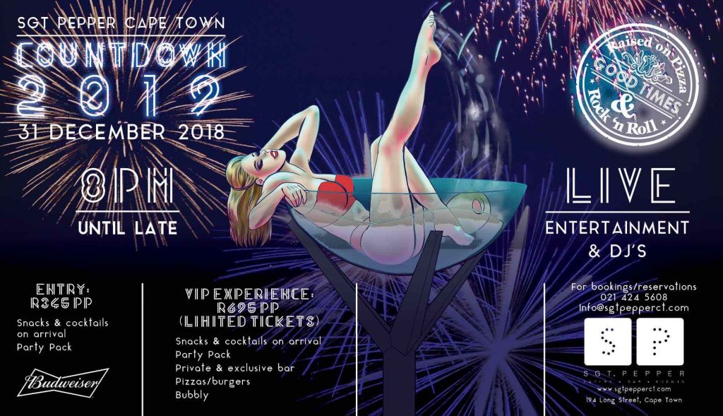 Celebrate the past and the future rock & roll style with Sgt Pepper this year. They have a line-up starting with live acoustic to get you warmed up, followed by a live band and ending with a DJ & live music to party into the new year.