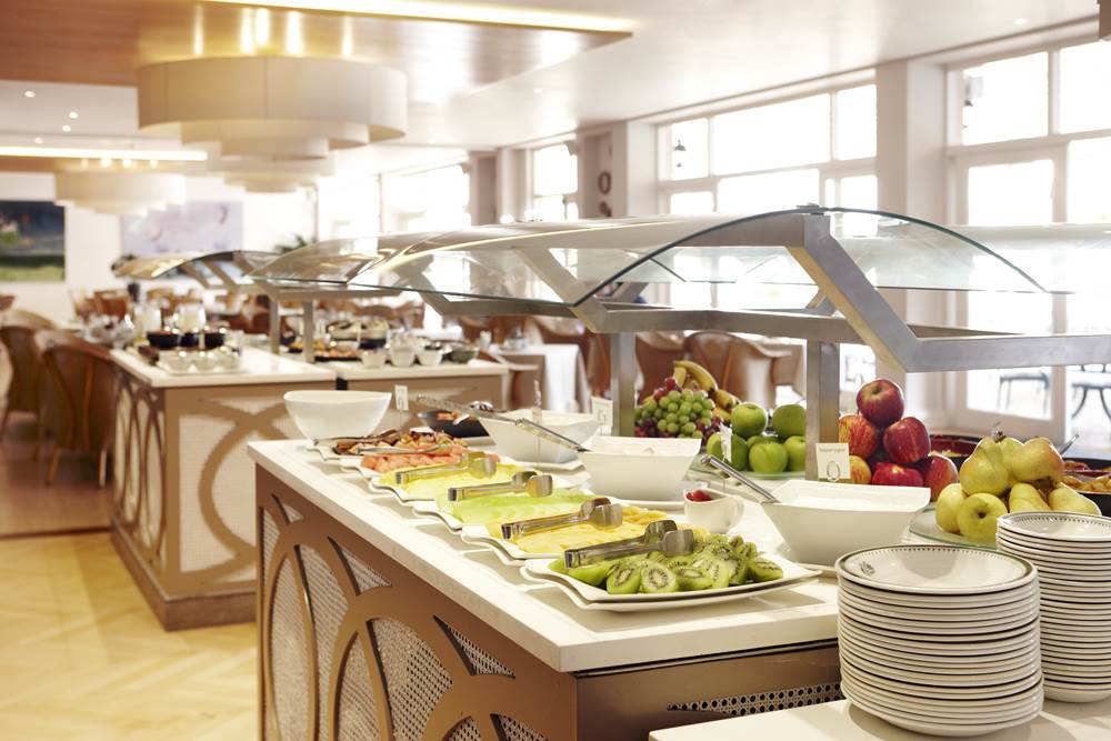 The restaurant, with its contemporary al fresco flair, offers an extensive Mediterranean-inspired buffet as well as an à la carte menu with grilled meats, roasted line fish and daily specials harvested from local markets.
