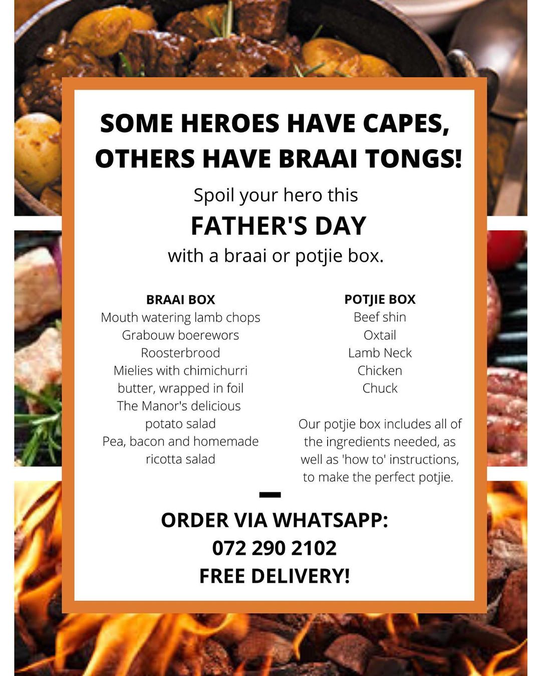 Dad is your hero, so why not treat him like one this Father’s Day? And even though you can’t show your love and appreciation by taking him to the timelessly elegant Hout Bay Manor, the class is delivered to your home this year – Eat Restaurant is donning their braai and potjie tongs!