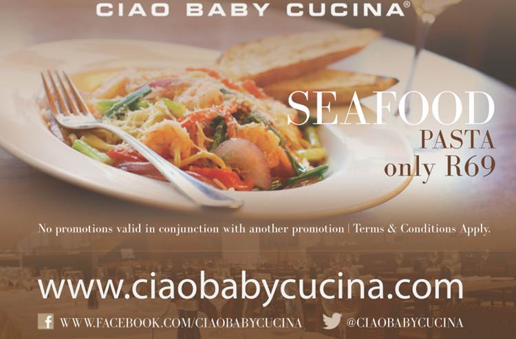 At Ciao Baby Cucina, they have combined the freshest seafood, authentic pasta & tantalising flavours to give you a true Italian experience for only R69!