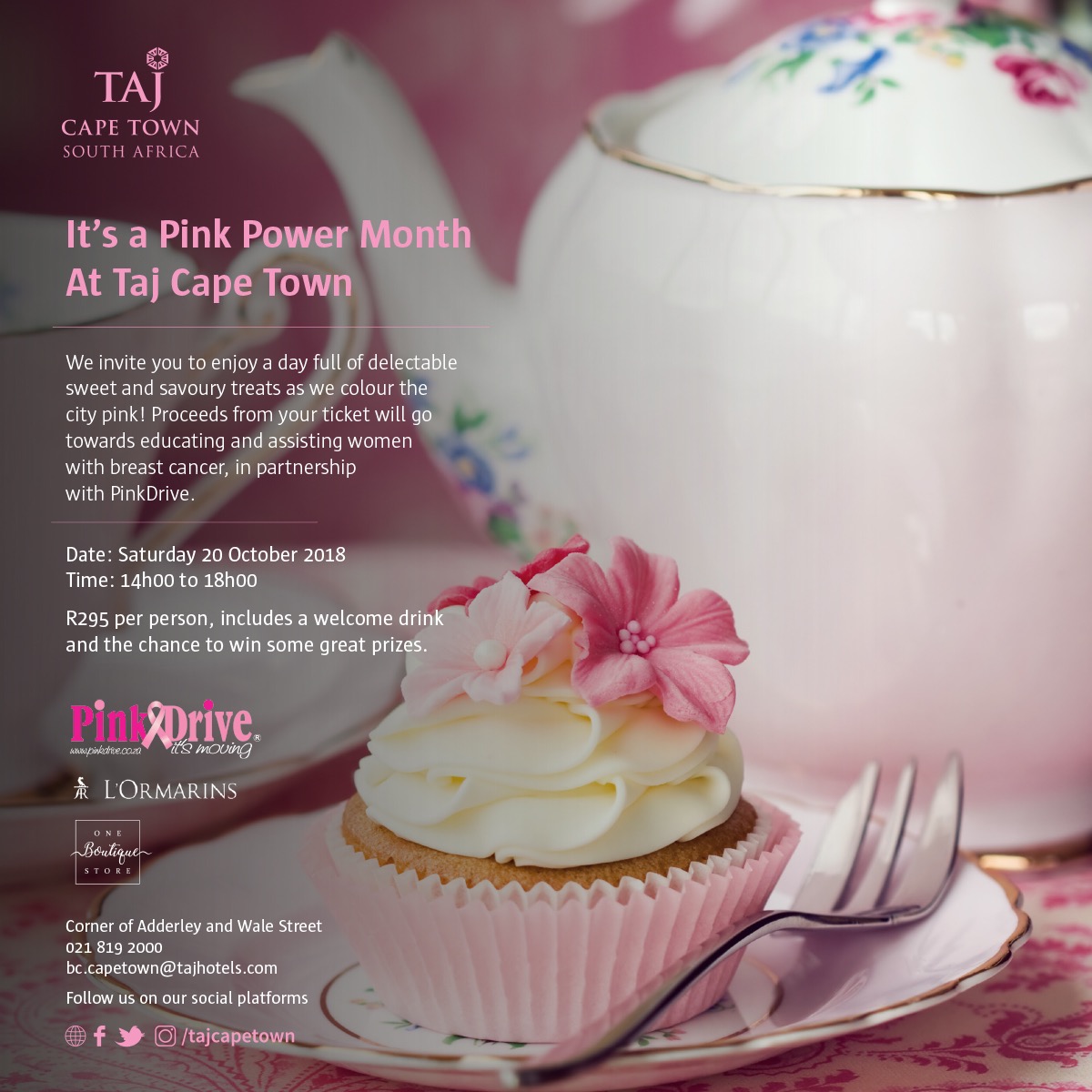 Organised in association with PinkDrive, the proceeds from the High Tea tickets will go educating and assisting women with breast cancer. Join Taj as they colour the city pink with a day full of delectable sweet and savoury treats.