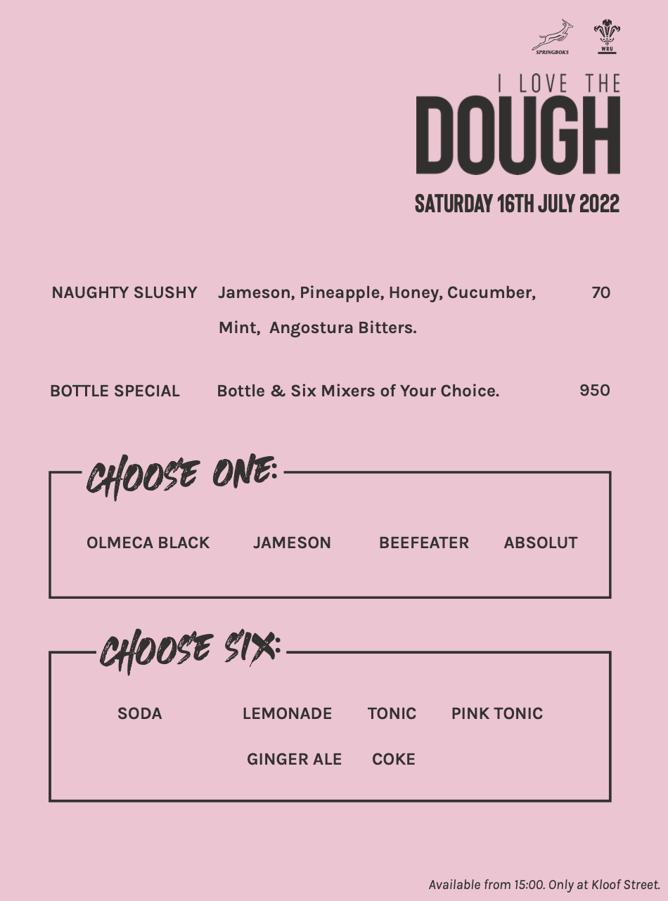 They are offering fantastic drink specials that go perfectly with a delicious pizza and an amazing atmosphere as you watch the bokke square up against Wales.