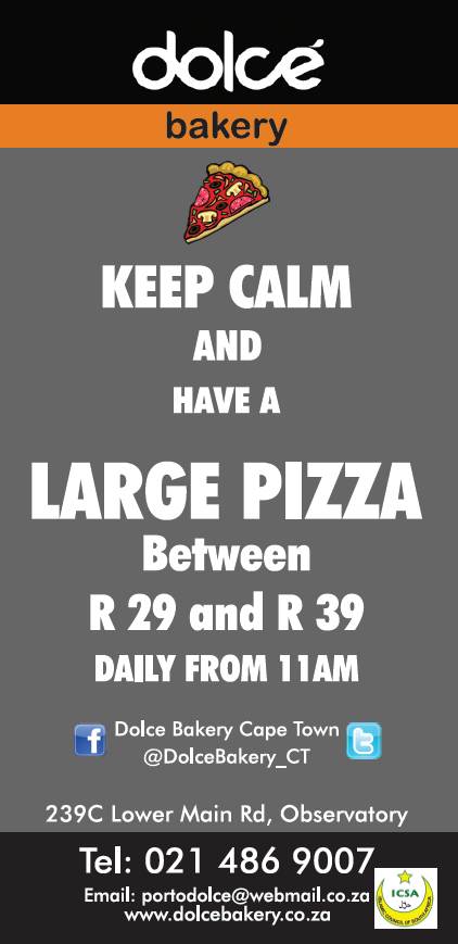 Keep calm and have a pizza! That is the word coming from Dolce Bakery – a small Patisserie and Confectionary in Observatory, Cape Town with a big heart for sweet delights and a big passion for quality.