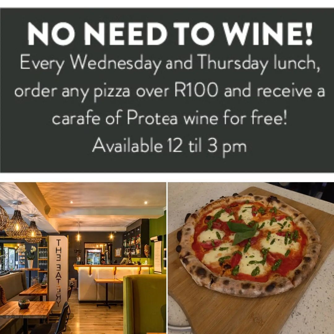 Enjoy their famous Neapolitan-style pizzas along with a complimentary carafe of Protea wine during lunch hours on Wednesdays & Thursdays.