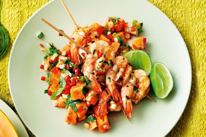 - Braai or chargrill on medium-high. Cook the skewers, turning, for 3-4 minutes or until the prawns change colour and are lightly charred. Serve with the papaya salsa and Vondeling Rosé.