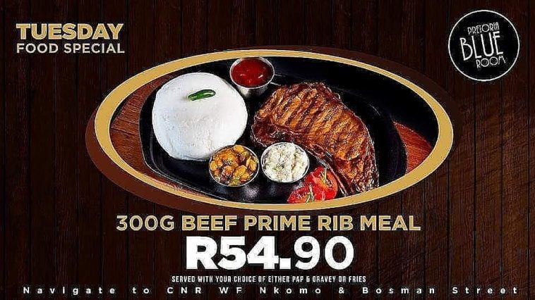 Every Tuesday treat yourself to a perfectly cooked, 300g beef prime rib meal that comes with a side of genuine South African Pap and gravy, or a side of classic hand-cut fries that are always cooked to perfection. All courtesy of The Blue Room CBD.