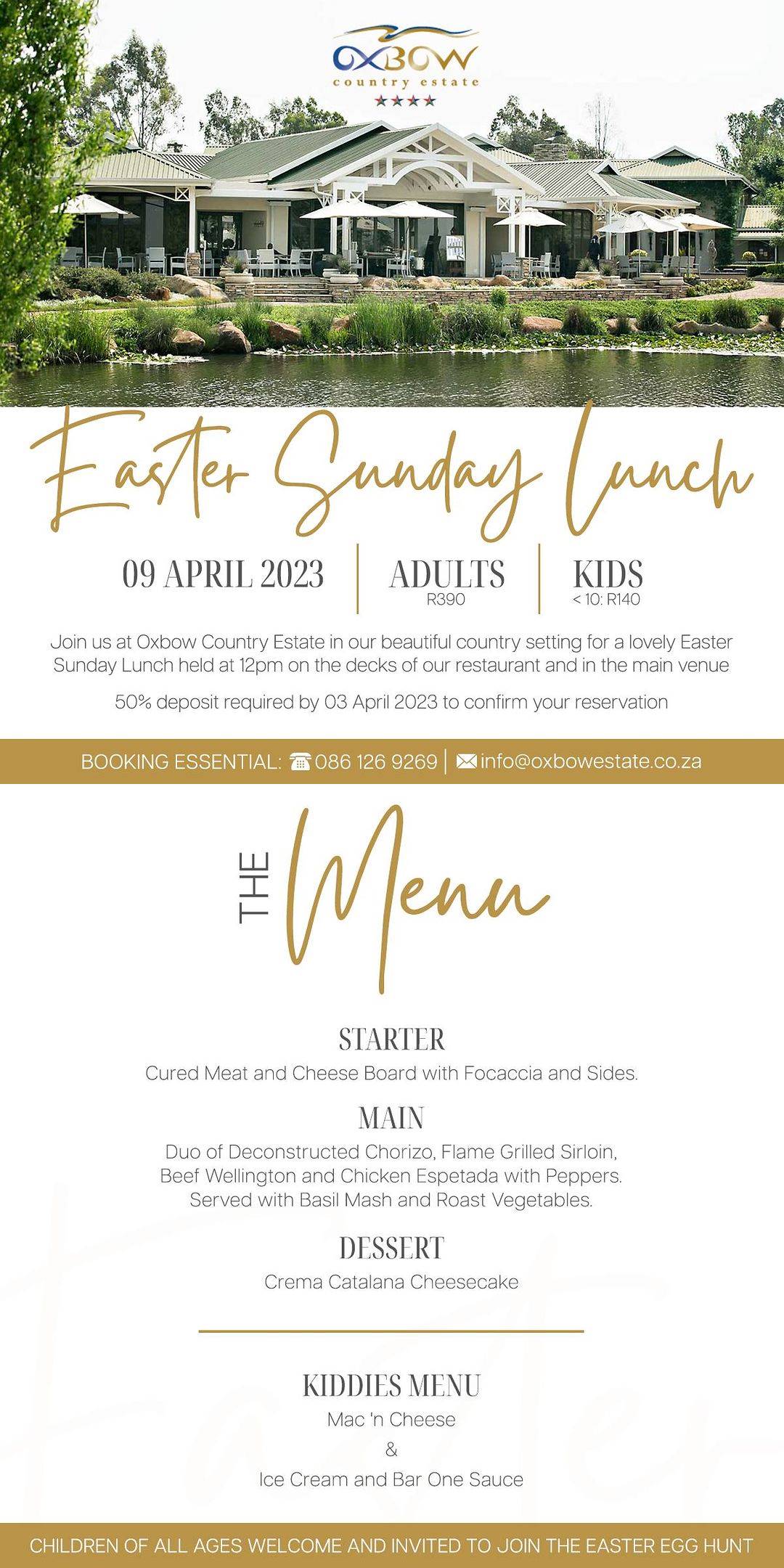 The Easter lunch menu at Oxbow Country Estate is packed with delectable treats that are sure to satisfy your taste buds.