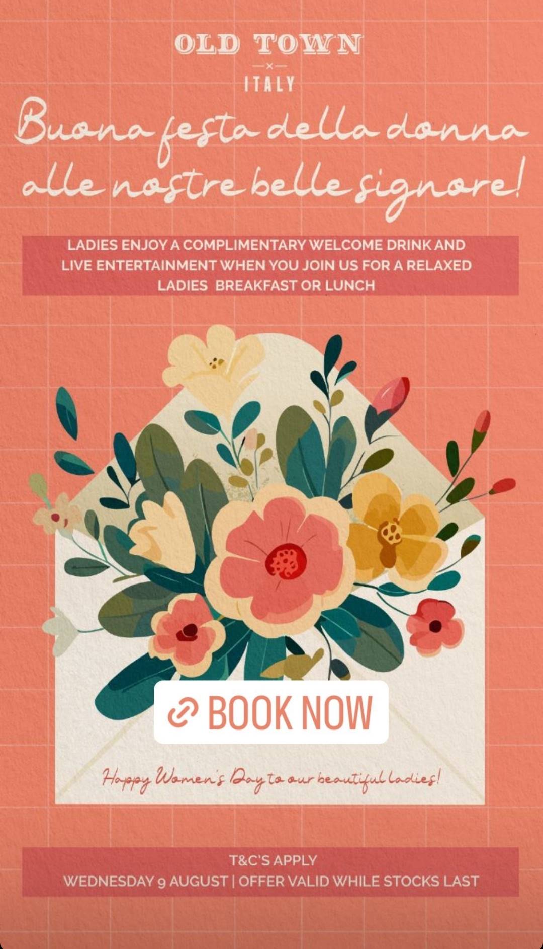 Join Old Town Italy on Women’s Day for a complimentary Welcome Drink and Live Entertainment