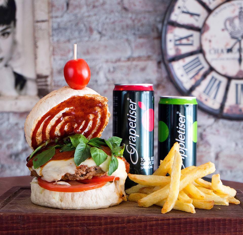 Enjoy a 200g Pure Beef Patty, melted mozzarella, marinara sauce, fresh basil, chips and an Appletizer or Grapetizer for only R65.50 when visiting Burger Bistro in Hazelwood. This promotion is valid from Mondays – Fridays between 11h00 – 16h00 excluding public holidays.
