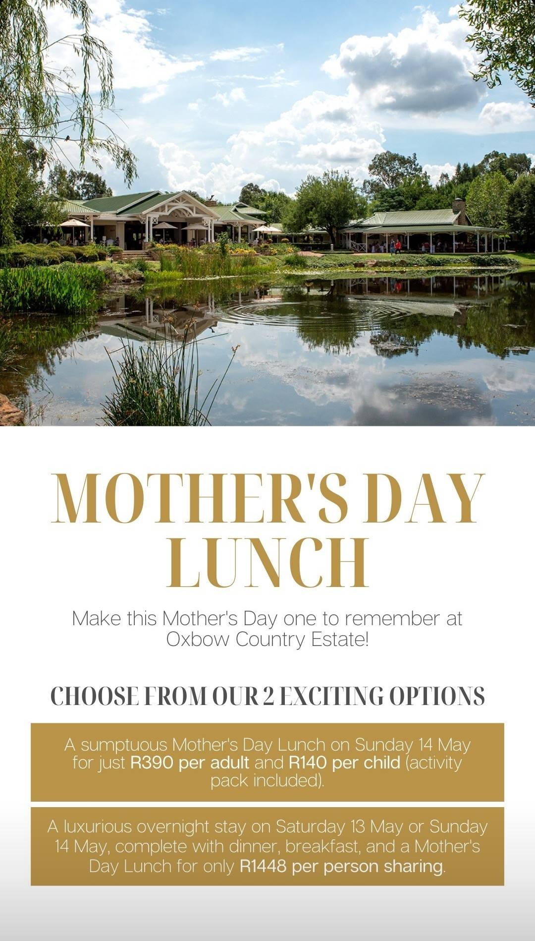 - This package includes dinner, breakfast, and a Mother’s Day lunch for only R1448 per person sharing. With comfortable accommodations, delicious food, and plenty of activities to enjoy, this is the ultimate way to spoil your mom and show her just how much you care.