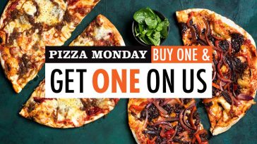 Try the Nacho Libre, a Mexican inspired, jerk spiced chicken pizza topped with fresh, homemade Guacamole, sour cream with a hint of tomato chili salsa or the popular, Moghul, an Indian butter chicken pizza topped with mozzarella, coriander and drizzles of crispy onion. Whether its brunch, lunch or dinner, the new Monday pizza special is available all day and is one special you won’t want to miss out on!