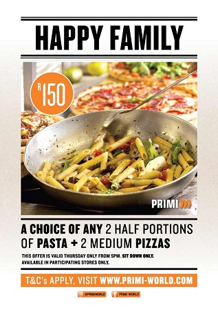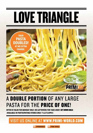 Primi is kicking July off with some pretty awesome specials which are not to be missed, so make sure you get down to Primi and feast on this! Starting Monday the 2nd of July. For more details on their Breakfast Madness, Family Specials and the Love Triangle click on the images below.