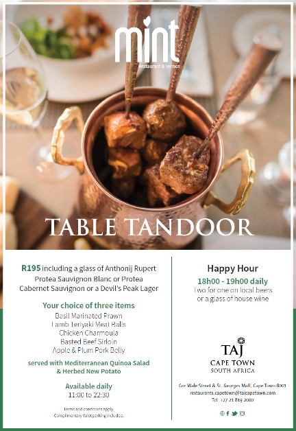 Bring a loved one to share delicious tandoor at Taj Cape Town