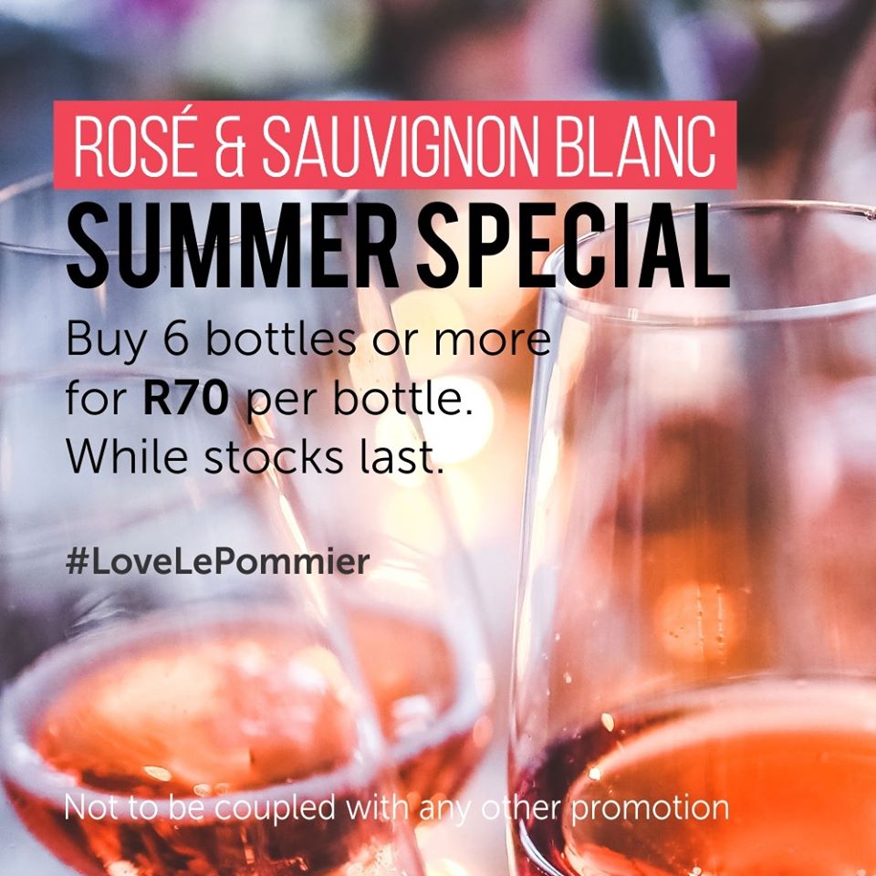 Buy 6 bottles of Le Pommier rosé or sauvignon blanc to take home and pay only R70 per bottle. Mix and match or be a purist and stick to one – but where’s the fun in that?