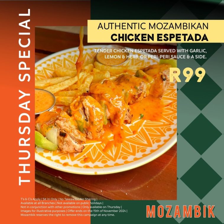 Whether you’re dining with friends, family, or that special someone, Mozambik promises to ignite your taste buds and kickstart the weekend early with an explosion of flavor. Don’t miss out on this unbeatable offer, available exclusively at Mozambik’s South African branches.