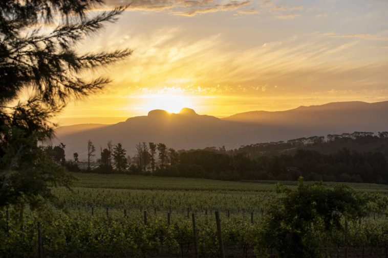 With its rolling vineyards, golden sunsets, and a dining room that looks straight onto the mountains, the estate already feels like a scene from a celebration.