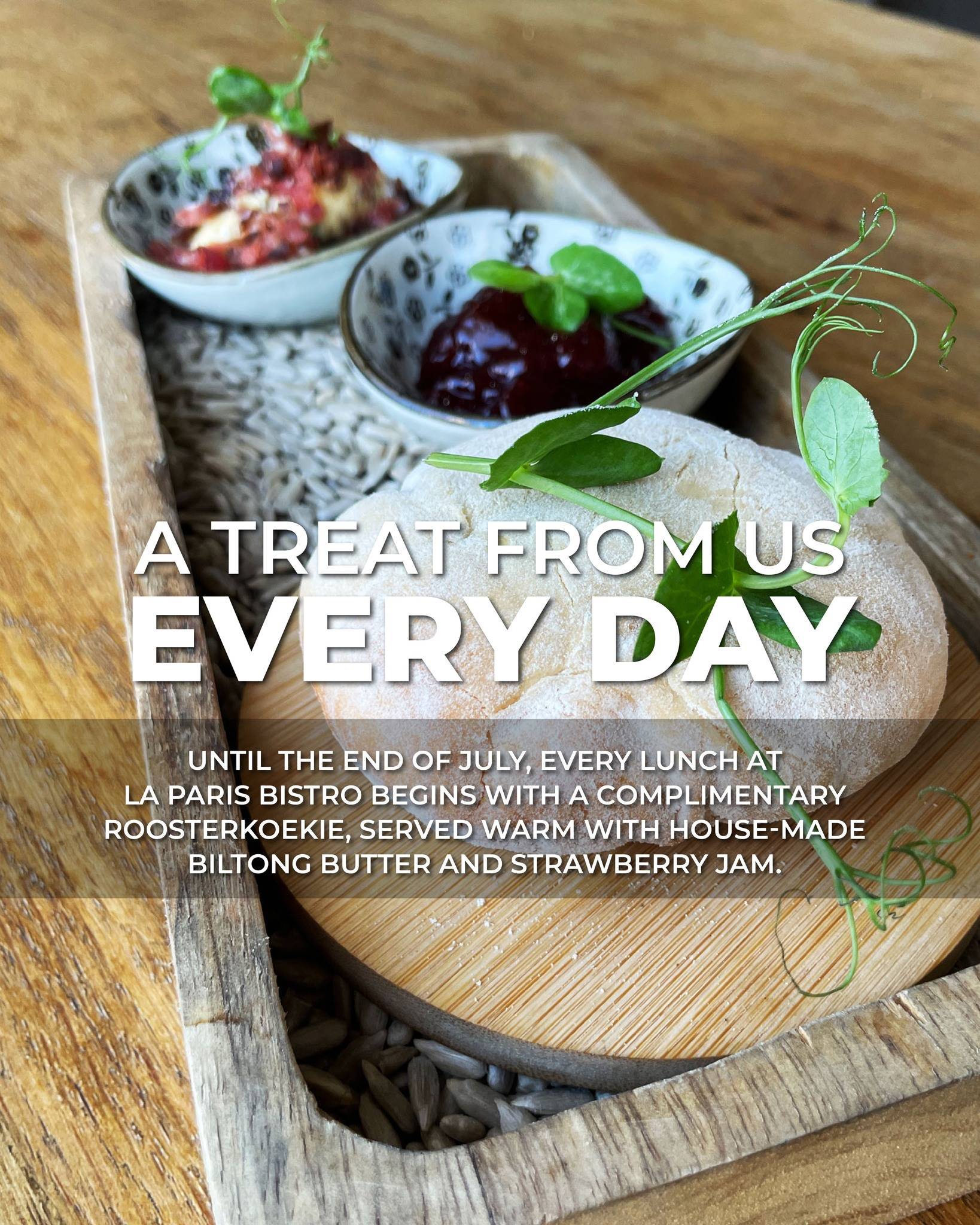 La Paris Bistro in Franschhoek is giving lunch a deliciously local upgrade this winter—and it all starts with a warm, fluffy roosterkoekie.