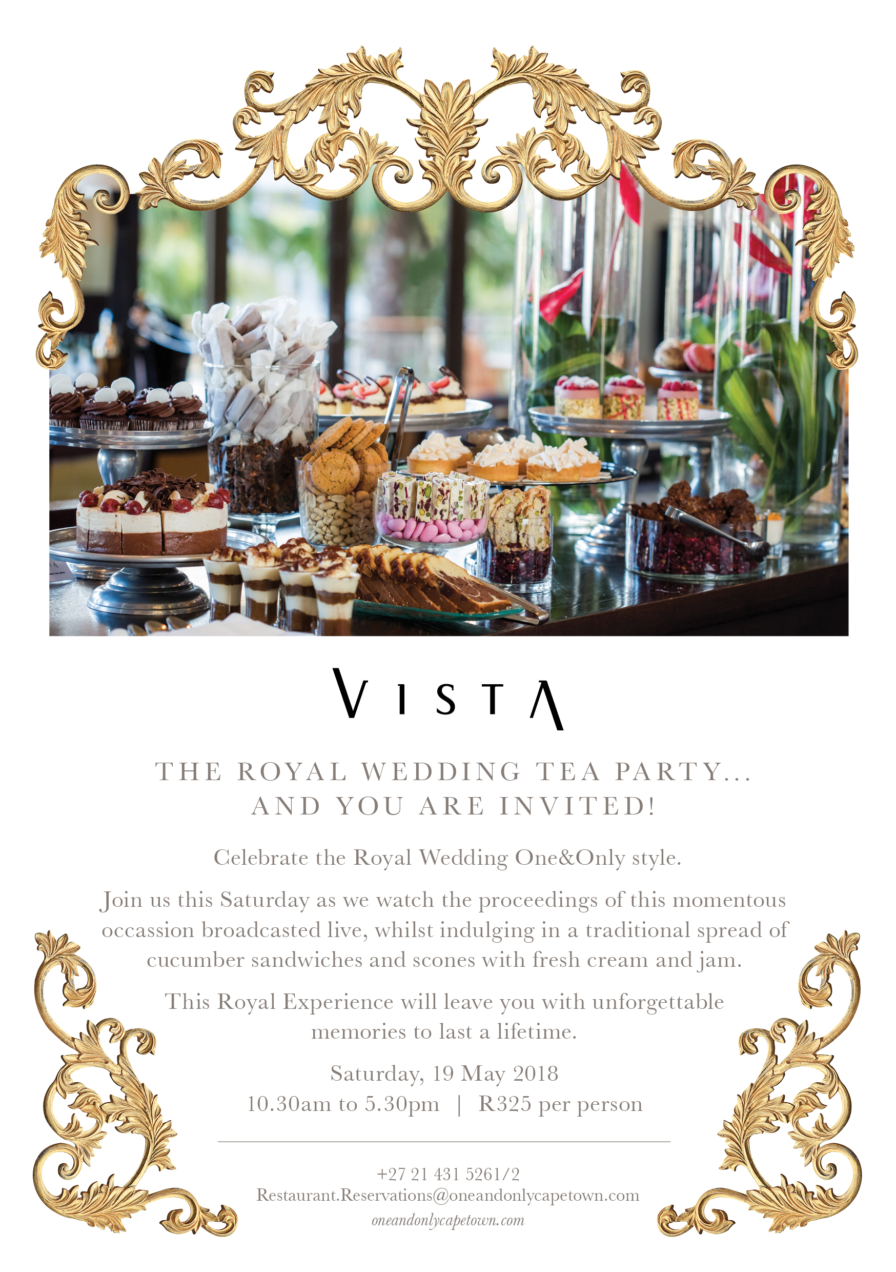 It’s a chance to have a bit of fun while watching the historic event, screened live on 2 large high definition TVs set up in the corners of Vista. So why not join One&Only and make glorious memories over tea and scones?