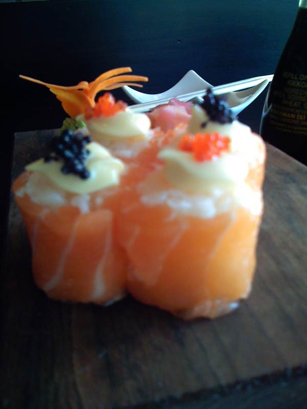 Signature dishes include Bon Bon Gifts (salmon fashion sandwiches wrapped in salmon and topped with mayo and caviar), Prawn Passion (Deep fried prawn California rolls topped with teriyaki sauce, Japanese mayo and spring onion), Malay Chicken (a rice noodle dish with wok seared chicken strips in a coconut milk, coriander and fresh chilli sauce) while the wok seared Salmon Salad continues to receive rave revues. The Wasabi Truffle (Lindt chocolate and wasabi base topped with a delicious Crème Bruleé topping) is simply decadent while the Salushi Soul (a refreshing cocktail with ginger and mint balanced beautifully with sweet vanilla, Tanqueray gin and vanilla sugar) is the perfect way to unwind after a long day.