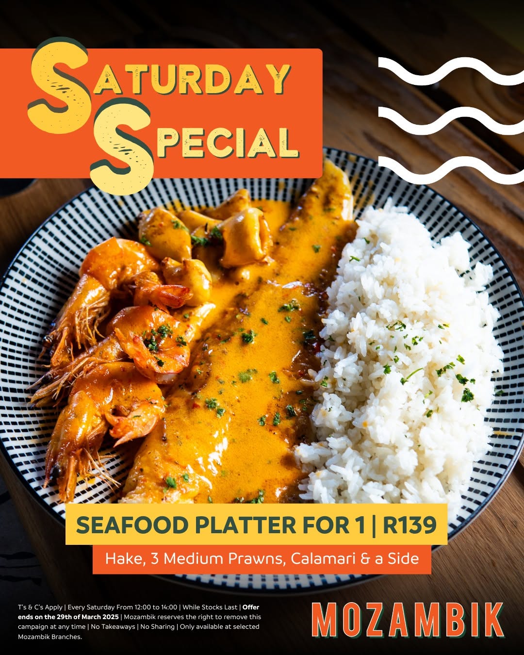 Weekends are meant for great food, good vibes, and indulging in something special—and Mozambik is making sure Saturdays are extra tasty with an incredible Seafood Platter Special for just R139!