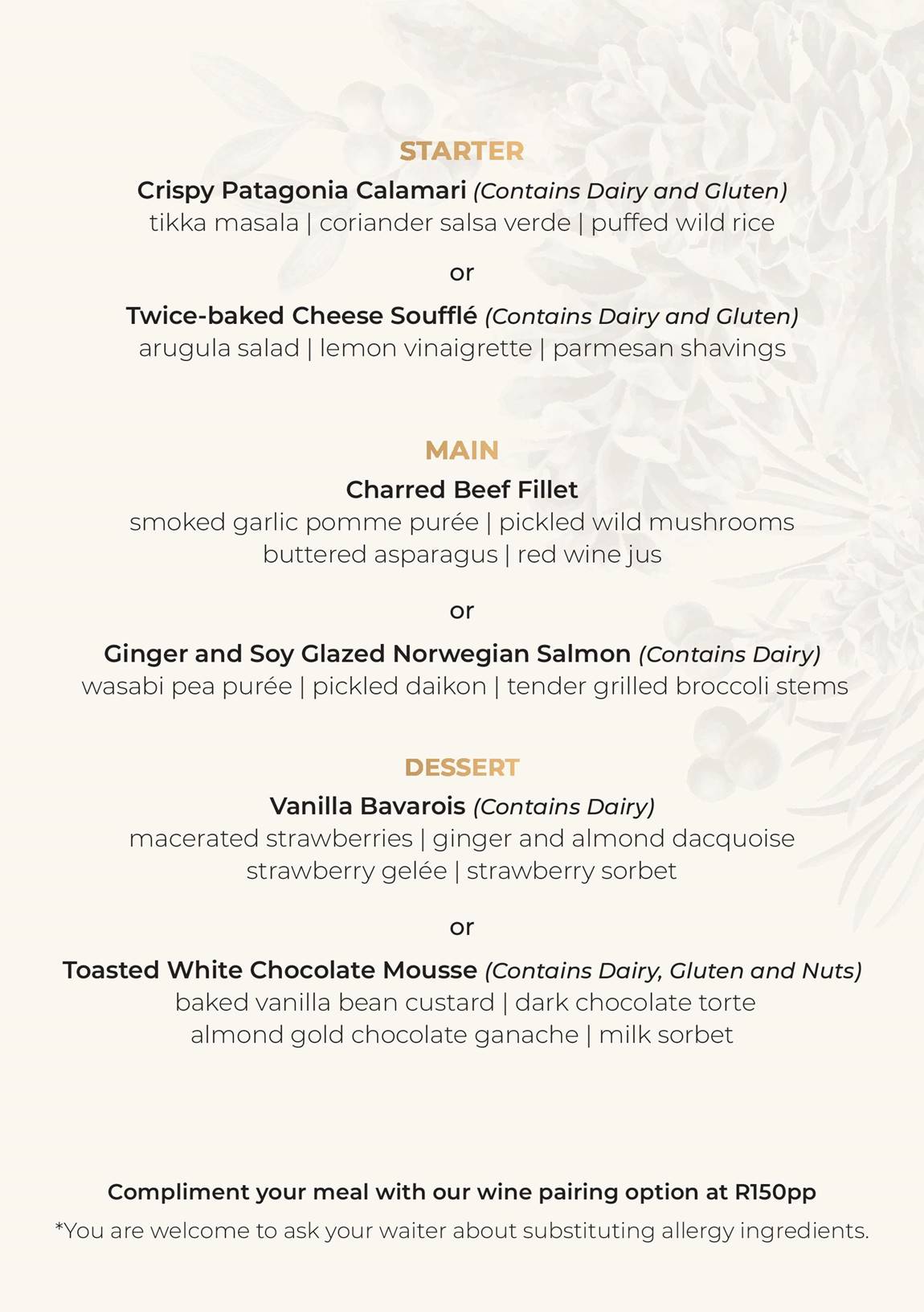 The ‘Savour the Summer’ menu offers a three-course dinner for R550.00 per person, available exclusively during dinner hours